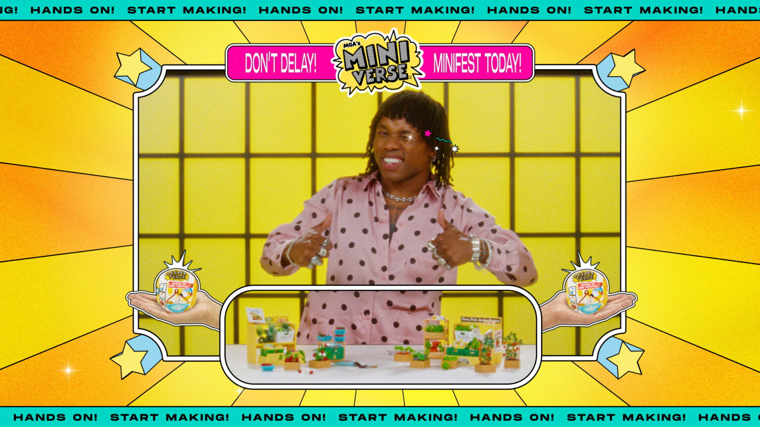 We had a blast designing and animating the motion graphics on this campaign of 3 spots for MGA Miniverse. The design style takes influence from old-school infomercials and Japanese variety show graphics, with a modern edge and loud aesthetic. Each spot showcases an influencer delighting in a couple sets of MGA’s “Make it Mini” collectibles, with product marquees, fun transitions, and graphic popups throughout!