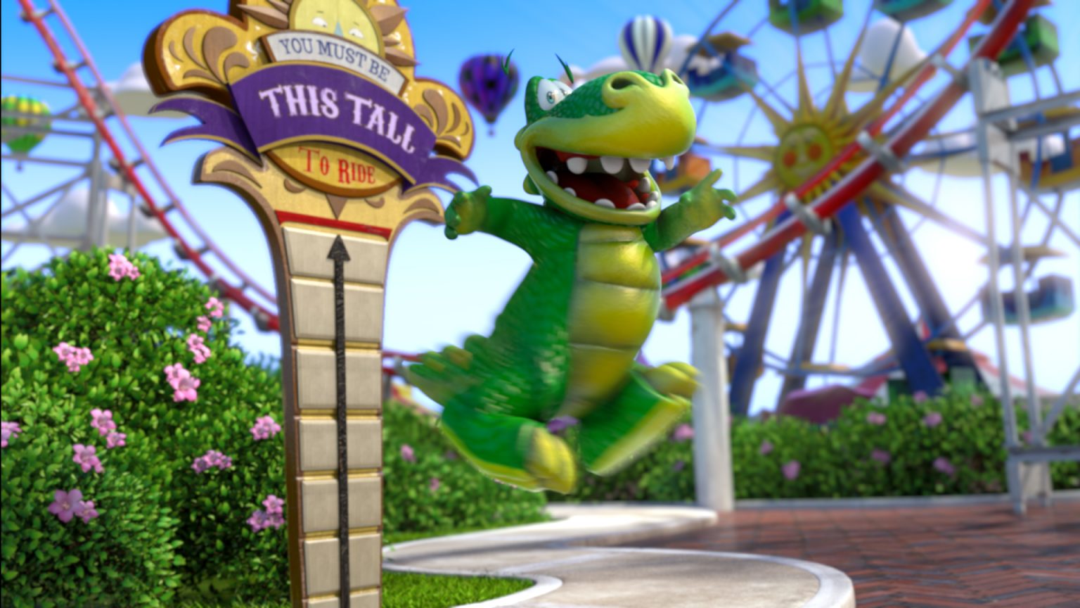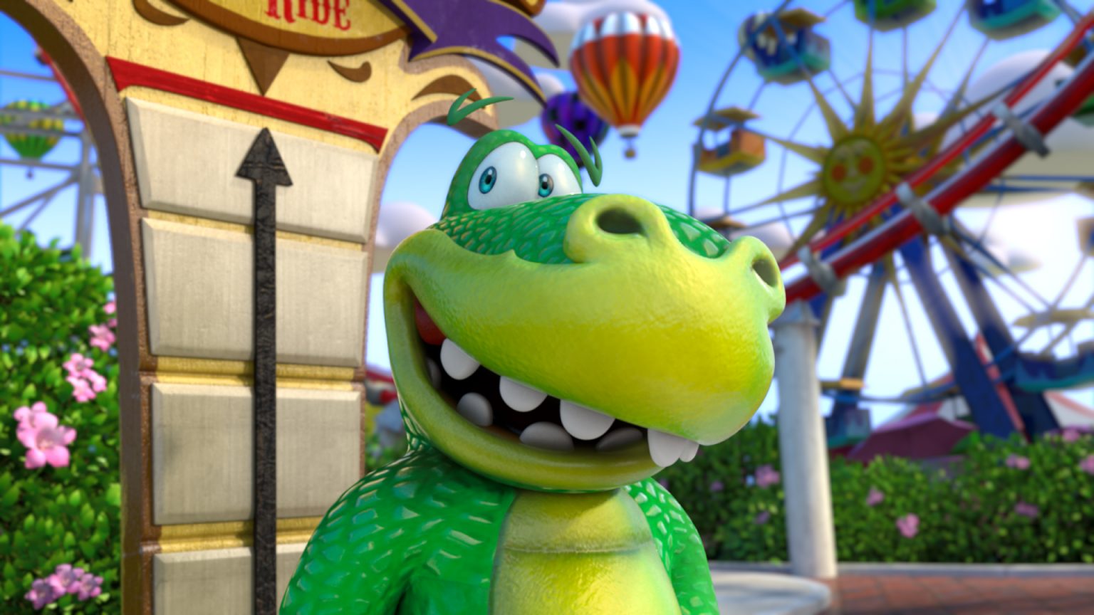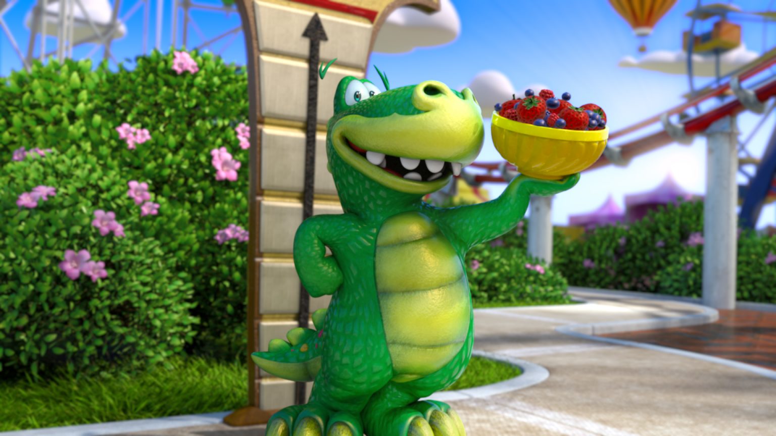 Plato the dinosaur adventures out to a theme park in one of four CG animated Publix spots.