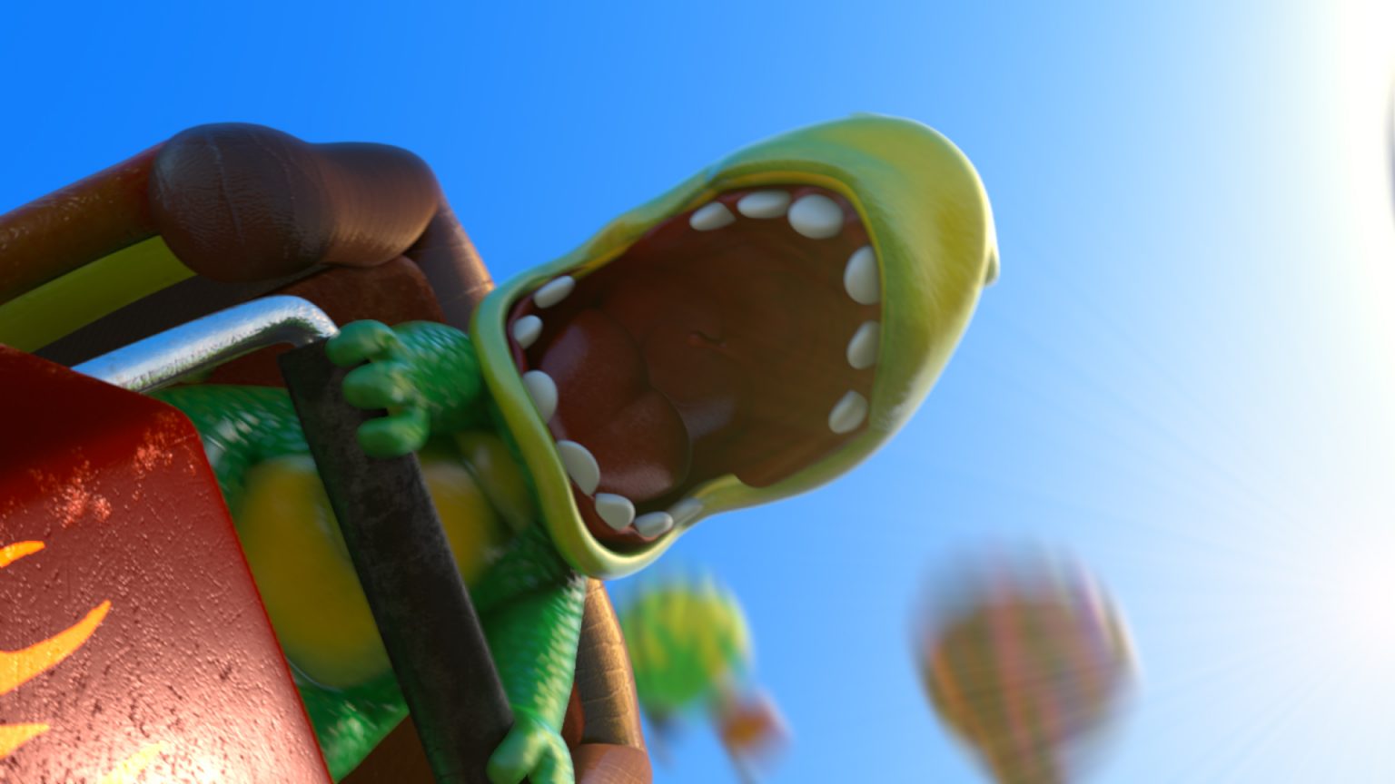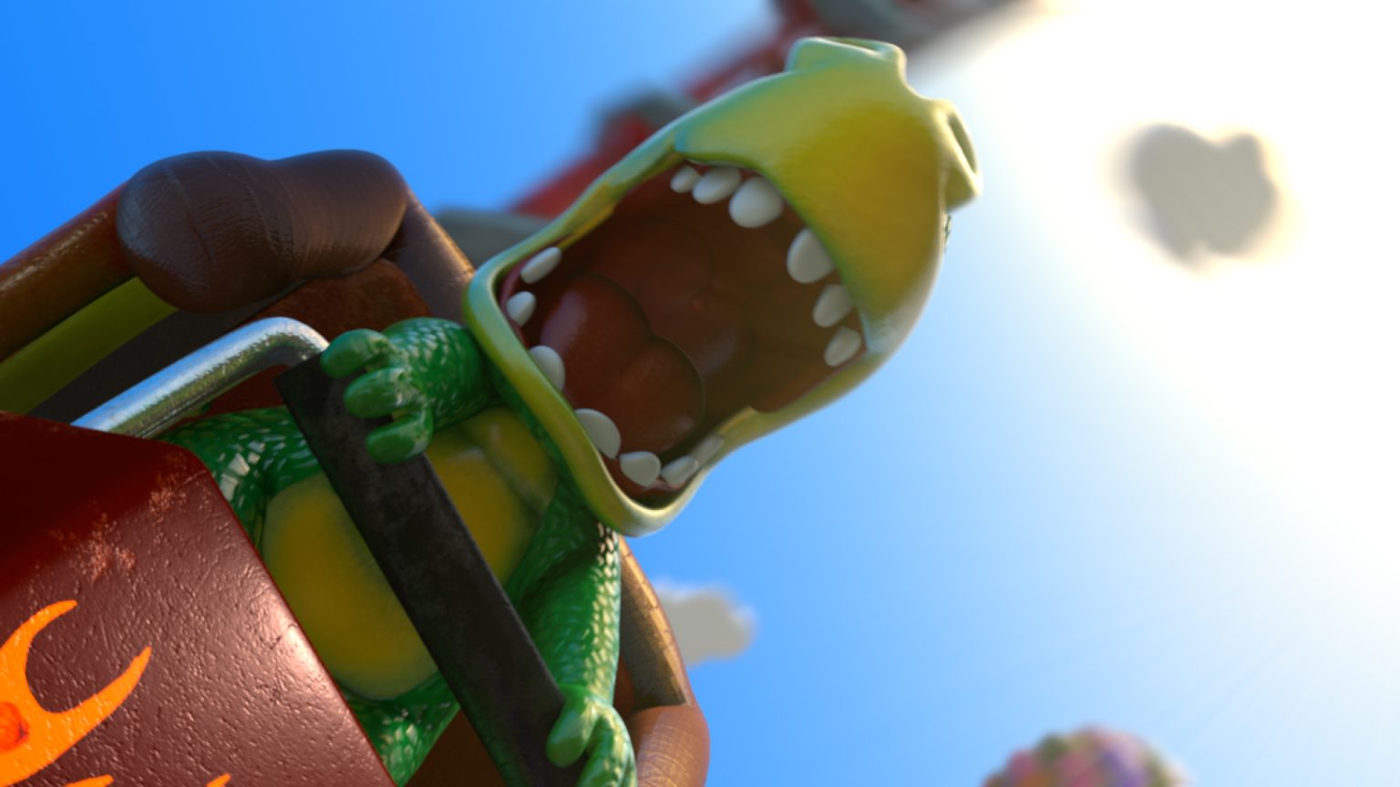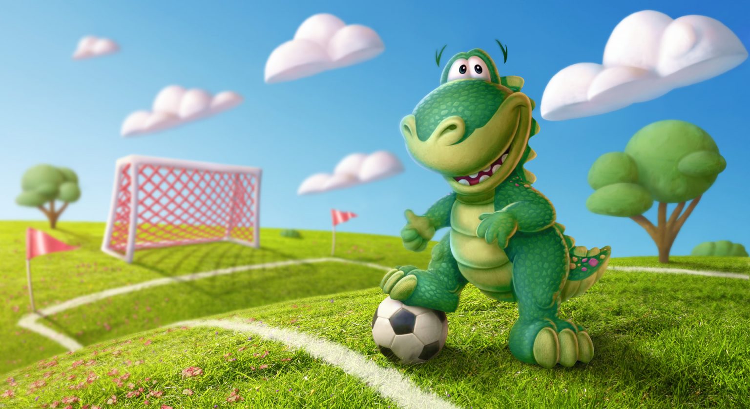 Plato the dinosaur adventures out to a theme park in one of four CG animated Publix spots.