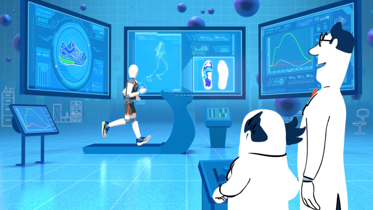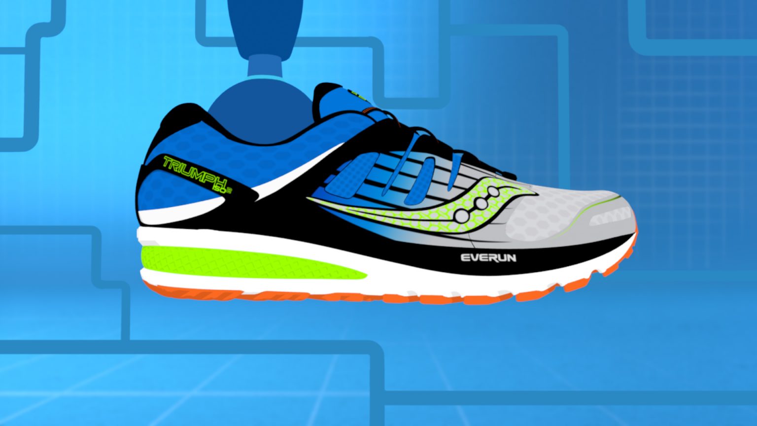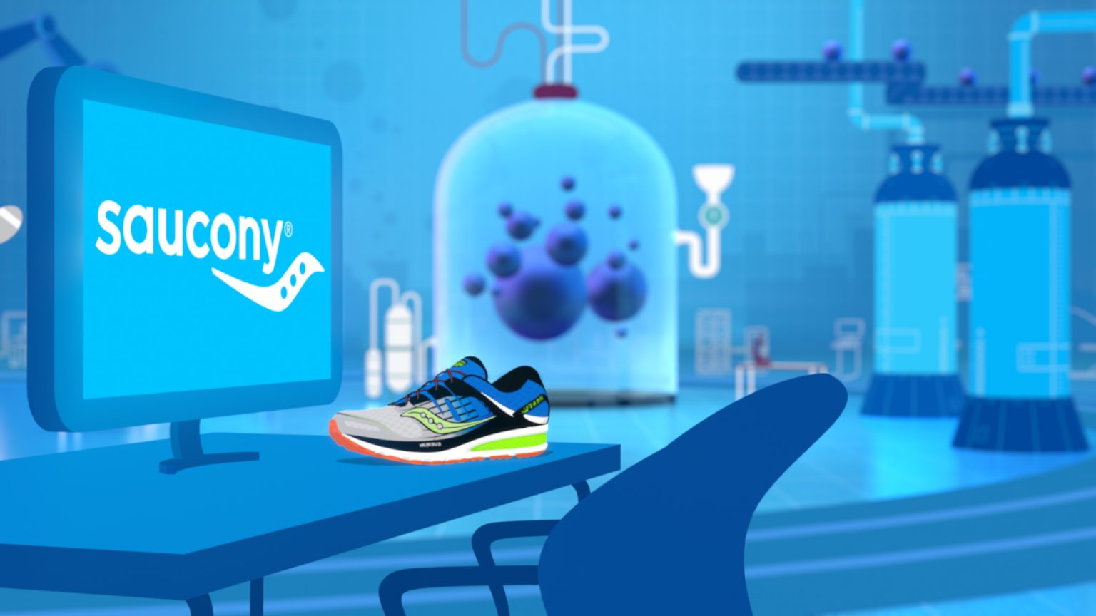 Take a look behind the scenes in the Saucony lab, where Miles and Max test out new “Everun” cushioning. Nathan Love creates a brand new animated world for this campaign to take off with!