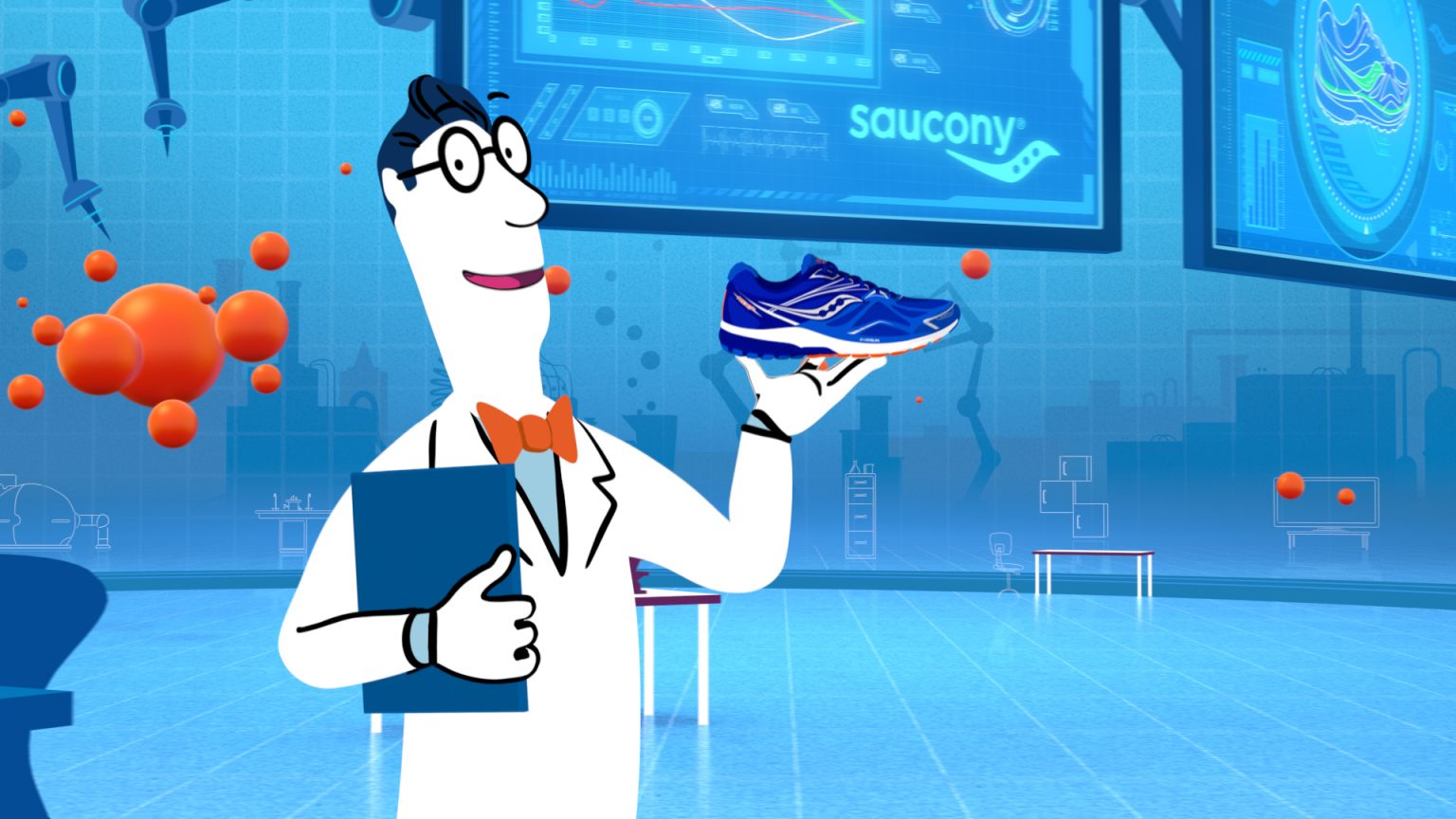 Even the Saucony Labs can’t contain this new spot! NL continues Saucony’s animated campaign with Max, Miles, and the Runbot to showcase a brand new running shoe.